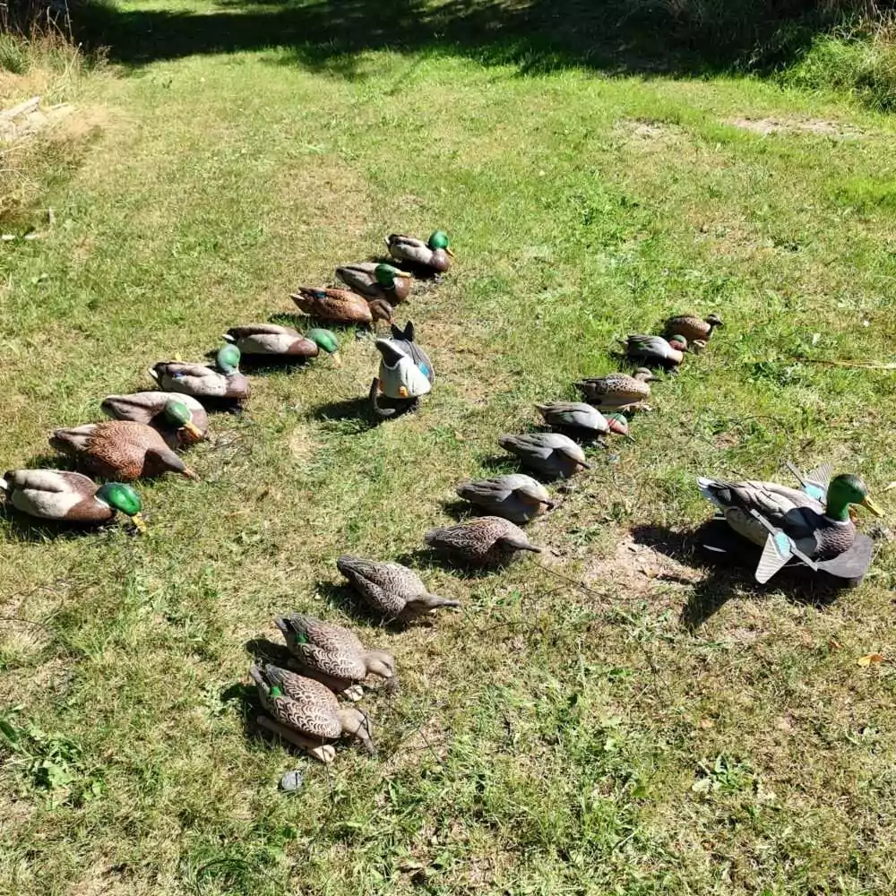 På grund av sjöns storlek behövdes bulvaner för att försöka Styra in eventuella änder på rimligt avstånd. För “arbetet” med bogsering valde jag att jag skulle vilja nöja mig med ett relativt litet set-up, i en bra kvalitet. Vi kryddade även set-uppet med ett par av de olika “motoriserade bulvaner” och ett lockpipa för maximal effekt. Specifikt tog jag med: Avian-X Gräsänder – Avian-X Kricka – Lucky Duck Agitator – Lucky Duck Splasher – Lockpipa för Gräsand