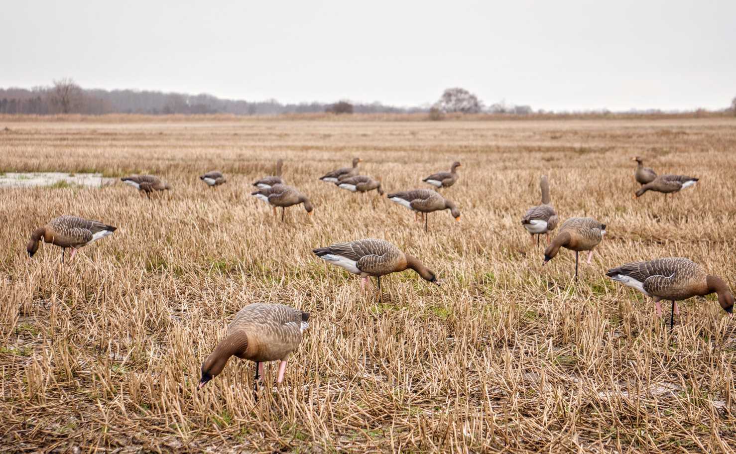 Det är dock ganska säkert att gässen kommer fram artär efter artär på morgonen. Om svanarna är där, är det de som kommer först i fältet sedan kommer grågäss, bläsgäss och pinkfoot gäss och sedan följer kanadagässen. Jag tycker att det fungerar bäst att gruppera bulvanerna ungefär efter art om jag planerar att skjuta flera arter på samma jakt. Jag kan dock sätta ett par grå gäss eller tre mellan kanadagässen på flera ställen och vice versa. Det ger ett ganska realistiskt uttryck.
