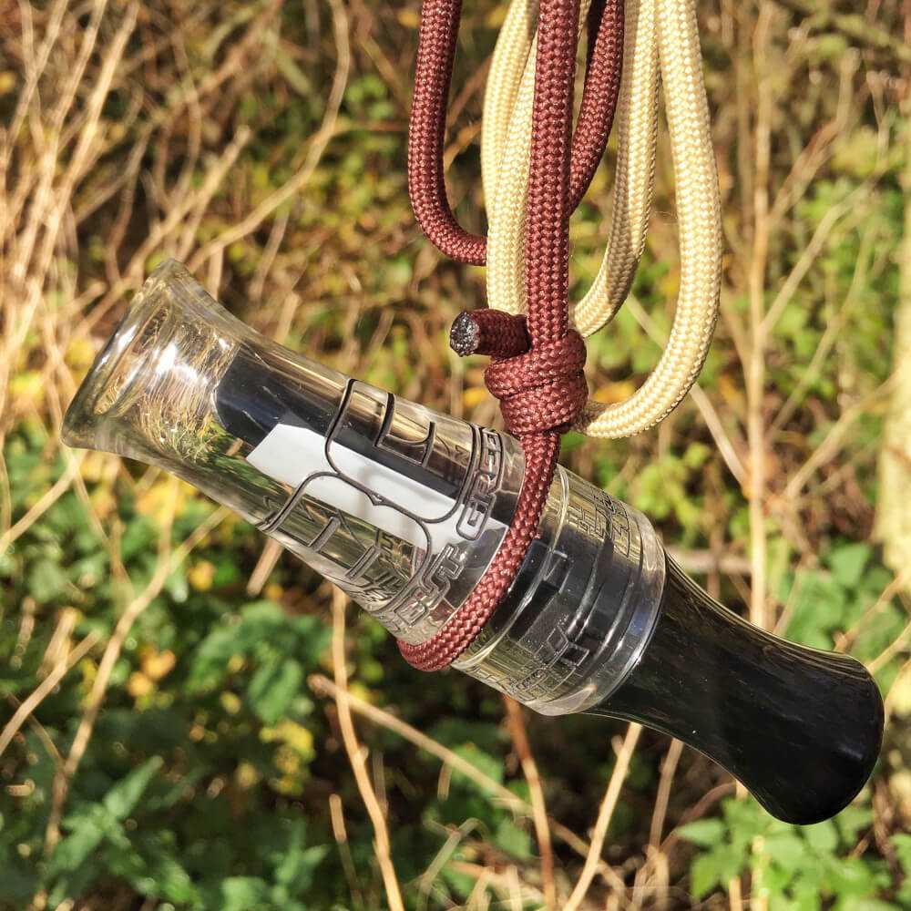 Copperhead Deluxe lanyard från Rig’Em Right Waterfowl är en säker och enkel förvaring av upp till 4 lockpipar och en hundvissel.