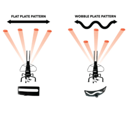Den medföljande trådlösa fjärrkontrollen gör att du enkelt kan styra lerduvekastaren på avstånd, medan det justerbara wobblersetet låter dig imitera trapskytte. Precis som på en “riktig” skjutbana. För ännu mer utmaning kan du byta riktningsplåtarna (båda ingår) och få en unik presentation av lerduvorna, varje gång!
