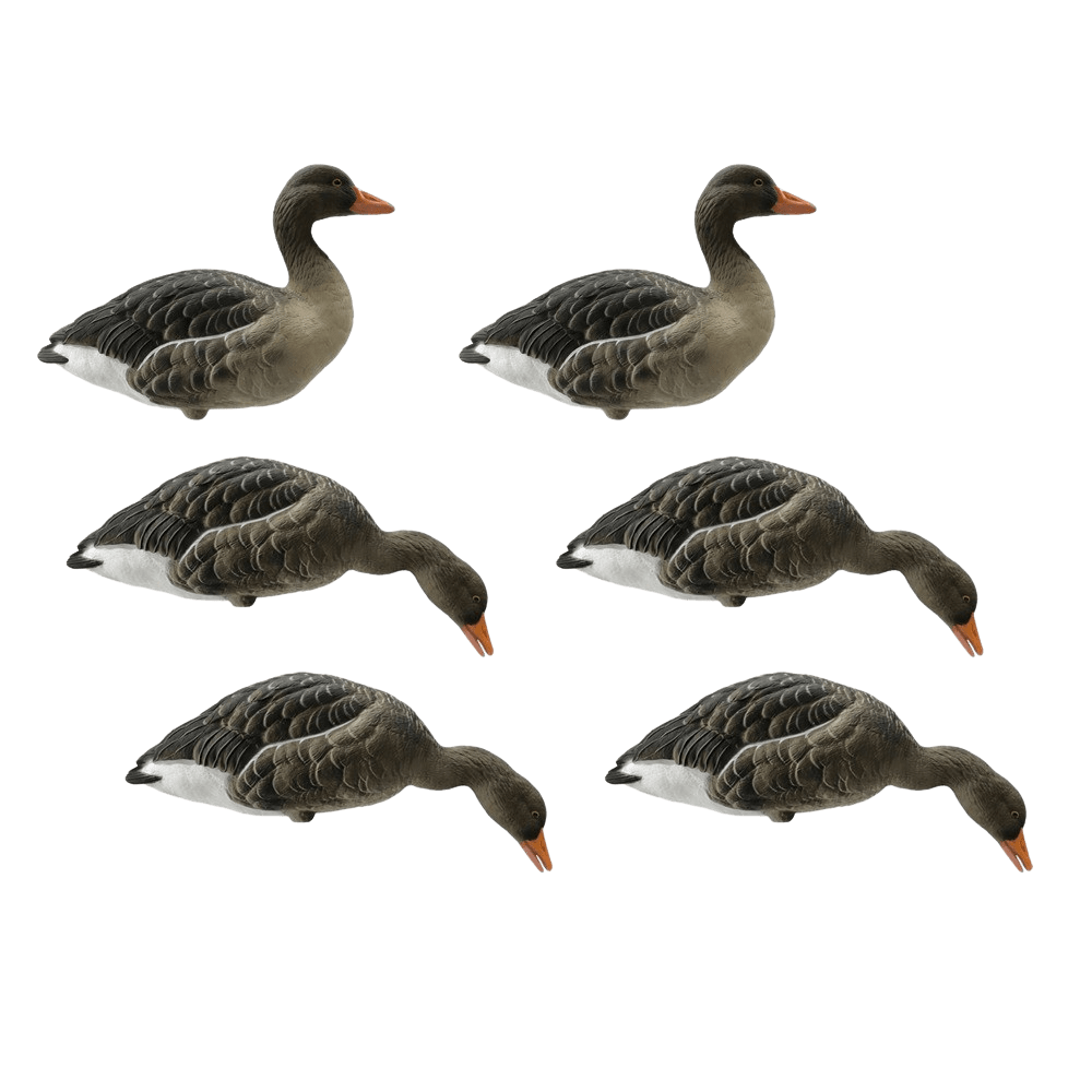 I lådan finns 6 fullkropps gäss med två olika huvudlägen – 2 x vakt och 4 x feeders.