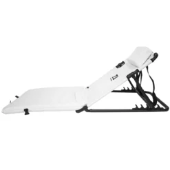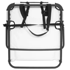 När det är dags att packa ihop, fäll bara stolen på mitten och spänn fast den.