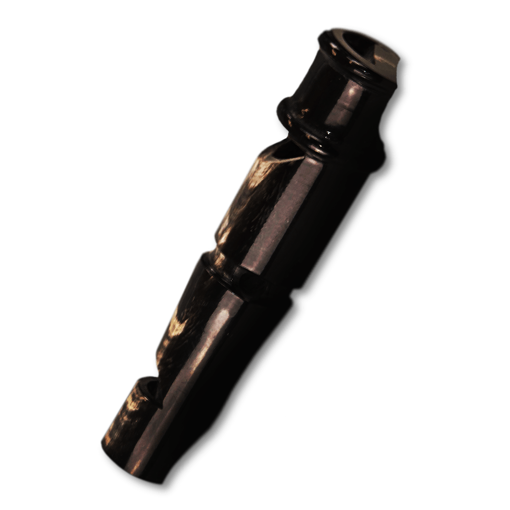 2-sidig hund visselpipa gjord av oförstörbar buffelhorn. Den ena sidan avger en “trill” och den andra en skarp ljud. Levereras med en bomullstråd så att den kan hängas runt halsen.