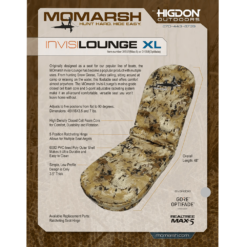 MOmarsh Invisi-Lounge designades ursprungligen som ett säte för användning i jaktpråmar, men används nu för allt från pråmjakt och gåsjakt, till att mysa i läger eller camping. Stolens design och den speciella skumfyllningen med slutna celler gör den bekväm och lämplig att använda även i våt terräng.