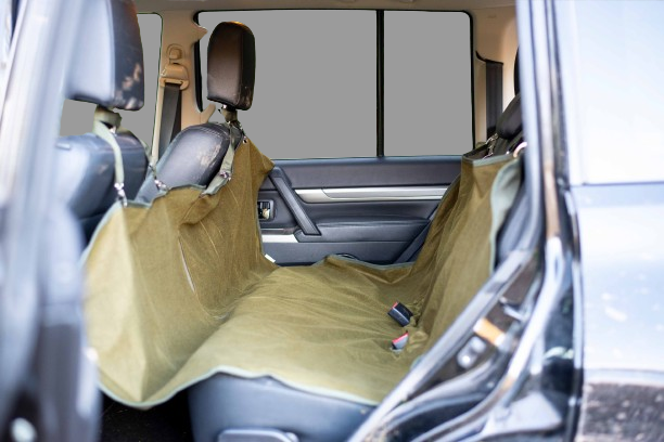 Överdrag för baksätet som är smutsavstötande och praktisk, när hunden skal vara med i bilen