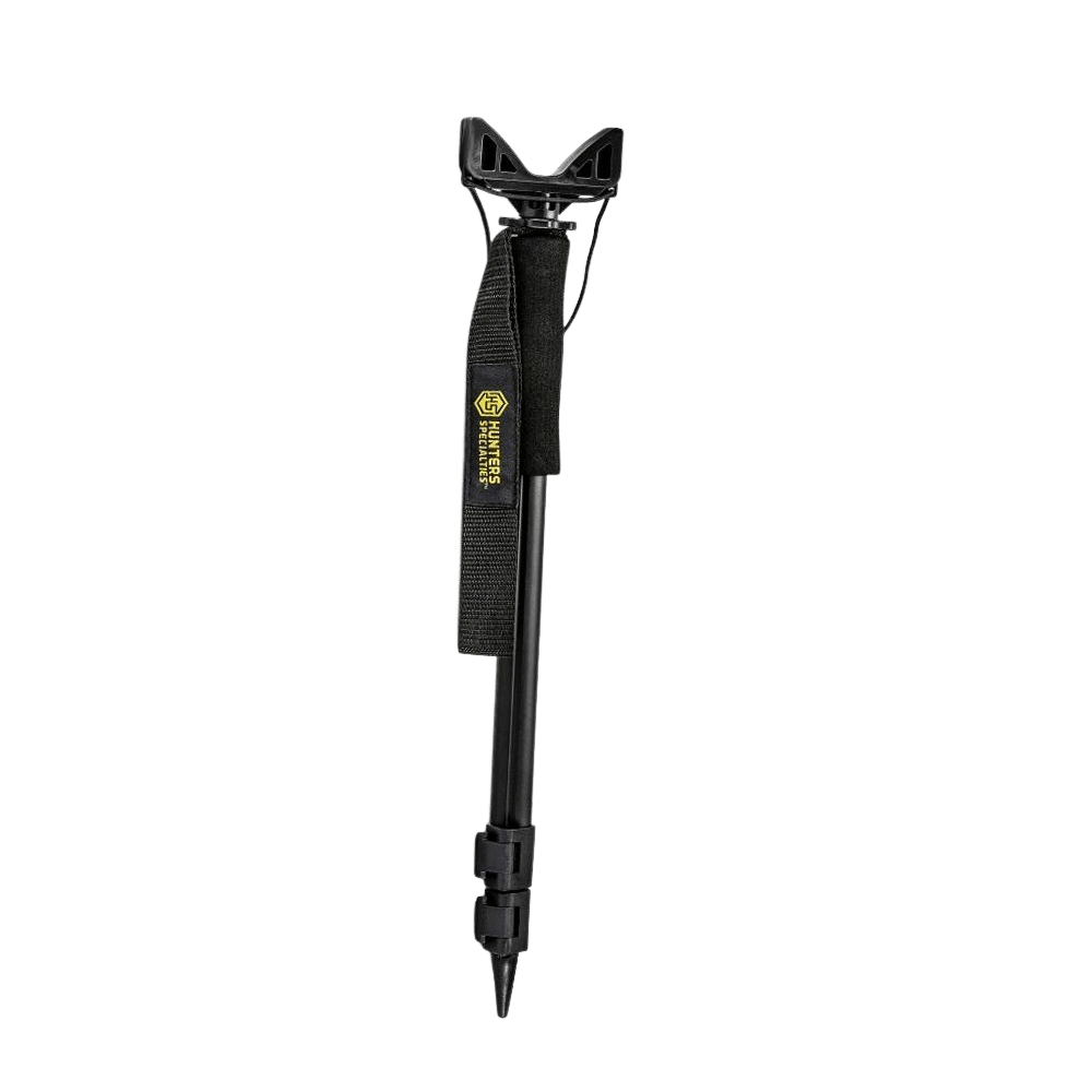 Denna 1-benta skjutstöd är lätt att ta med sig på språng och den ger en fin vila för geväret. Detta gör den perfekt för pürchjakt, jakt i tät skog och generellt jakt där packningen måste vara lätt. Dess monopod-design är gjord av gummi och stödjer därmed ditt vapen utan att skada det. Skjutstödet har också ett skumhandtag, en handledsrem och ett elastiskt snöre för att fästa runt gevärspipan. Med ett par benlås med snabbkoppling kan det starka, lätta aluminiumskaftet snabbt justeras från 43 cm till 91 cm i längd, vilket gör stickan särskilt lämplig för sittande skjutställning.