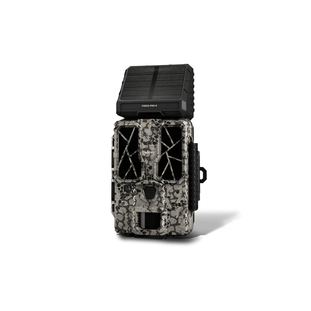 Den nya Spypoint FORCE-PRO-S kombinerar den kraftfulla prestandan i FORCE-serien med körtiden för de välkända SOLAR-kamerorna.