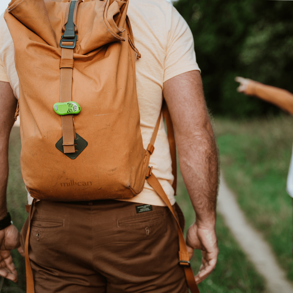 Hur man använder Tickless Human: Ta bort “Splitten” för att aktivera enheten. Tryck på knappen för att slå på eller stänga av enheten: 4 korta gröna blinkningar indikerar att enheten är på, medan en enda lång röd blixt indikerar att enheten stängs av. När den är på kommer lampan att blinka en gång ungefär var 5:e minut. Efter 8 timmars kontinuerlig drift stängs enheten av automatiskt och bör sättas på igen innan den används igen. Fäst enkelt enheten till dina kläder, bälte eller väska. Placera inte enheten i en ficka eller väska, eftersom detta blockerar de utsända ultraljudsvågorna. Vid normala temperaturer kan enheten hålla fästingar borta i minst 6 månader.